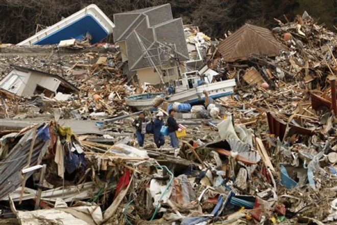 de 2011. Terremoto de 9.0 y tsunami de casi ocho metros (veintitrés pies) causan