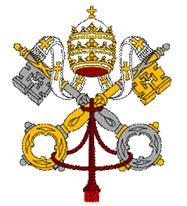 III. La Tiara Papal y el Escudo Papal, símbolos del “triple poder” que reclama la Curia Romana.