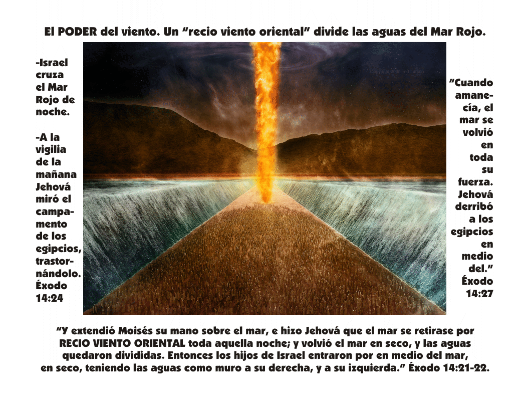 Ejemplo del PODER del viento. Un "recio viento oriental" divide las aguas del Mar Rojo. Éxodo 14:21-22.