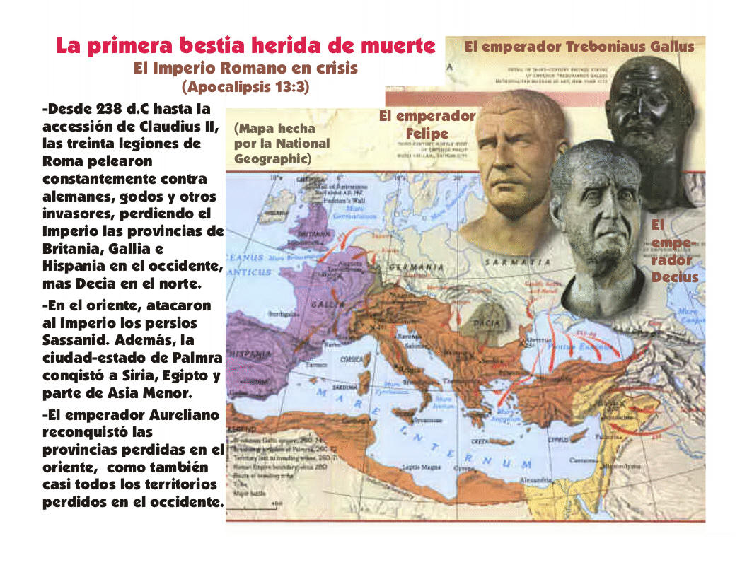 Sobreimpuestos en el mapa, los bustos de los emperadores romanos Felipe, Gallus y Decius. Mapa y bustos por la revista National Geografic.