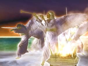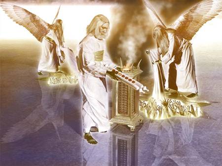 a) El ángel que ofrece el incienso, llenando luego un incensario del "fuego del altar" y arrojándolo a la tierra (Apocalipsis 8:3-5).