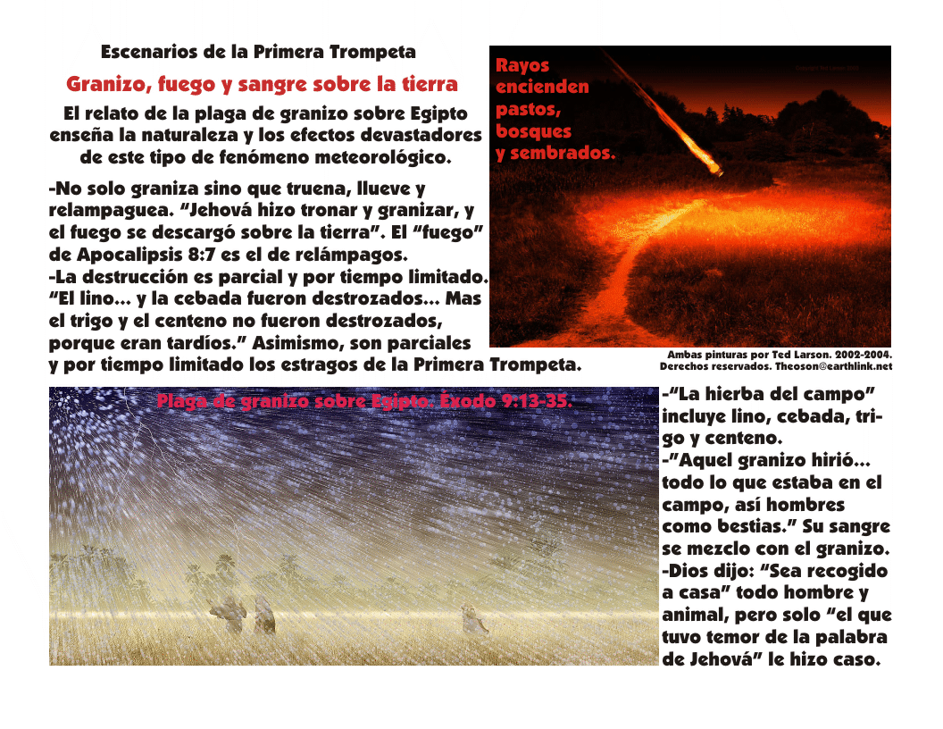 Escenarios de la Primera Trompeta. Granizo, fuego y sangre sobre la tierra.