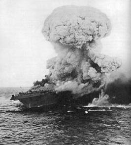 El portaviones Lexington herido fatalmente por un bombardeo japonés