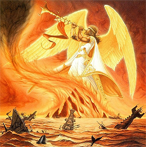 II. La Segunda Trompeta. Escenas sumamente dramáticas y con grandes repercusiones escalofriantes toman lugar al sonar el segundo ángel su trompeta. El boceto inspirado para el drama de esta Segunda Trompeta consta de solo dos oraciones compuestas de unas cincuenta y dos palabras. En contraste, empleamos hasta miles de palabras para describir detalladamente las escenas y la terminología particular de esta visión, determinar su cumplimiento preciso en la tierra y confirmarlo con datos relevantes. Pensamos no incurrirnos en exageraciones innecesarias ya que eventos de tan grande envergadura, como los que proclaman esta Trompeta, merecen, según nuestra apreciación, ser estudiados con la mayor atención y paciencia.